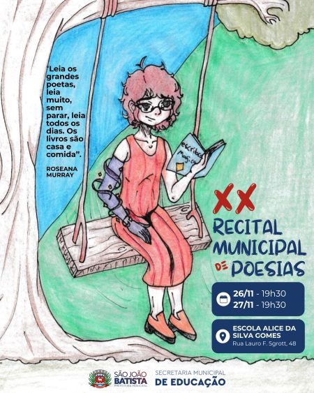 Evento reúne poesias vencedoras dos recitais internos das escolas participantes e será realizado na Escola Alice da Silva Gomes, às 19h30 A 20ª edição do…