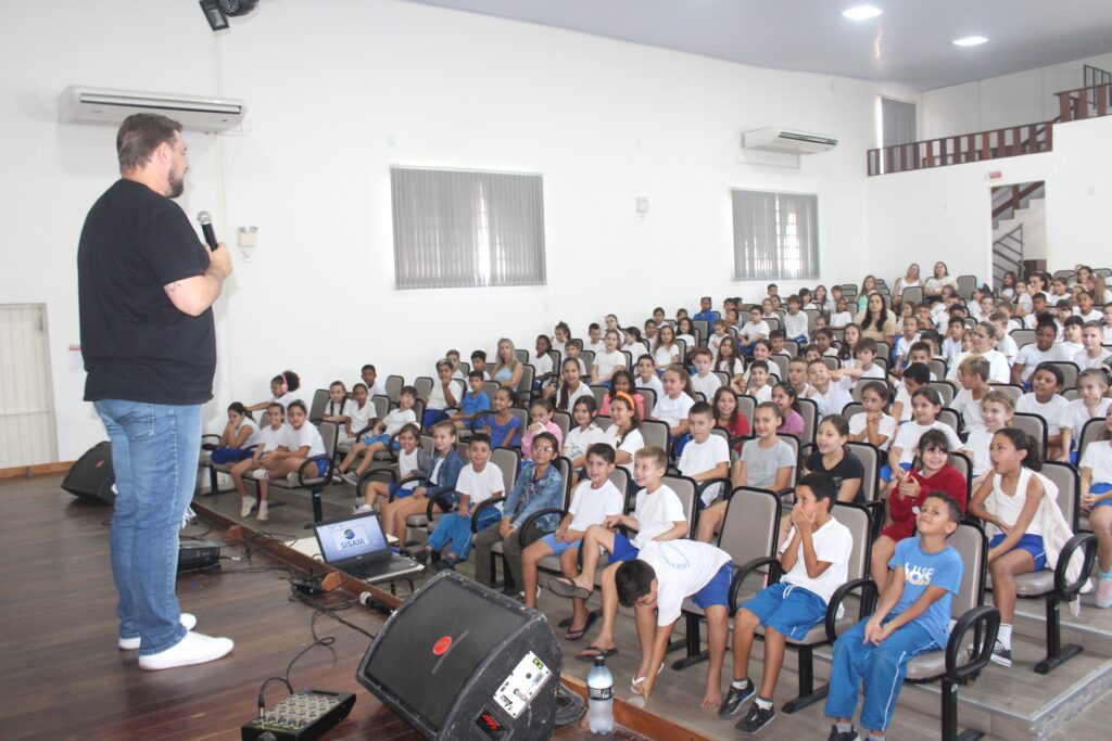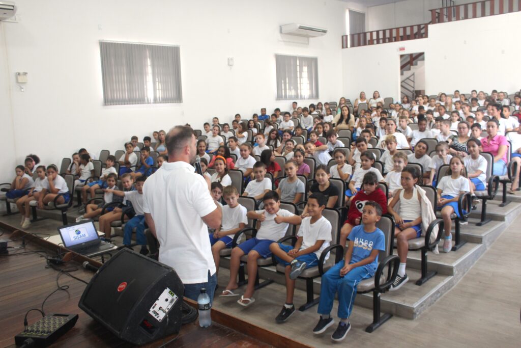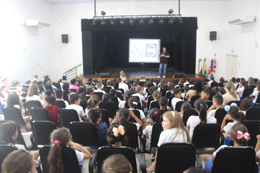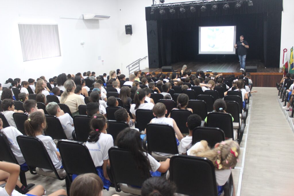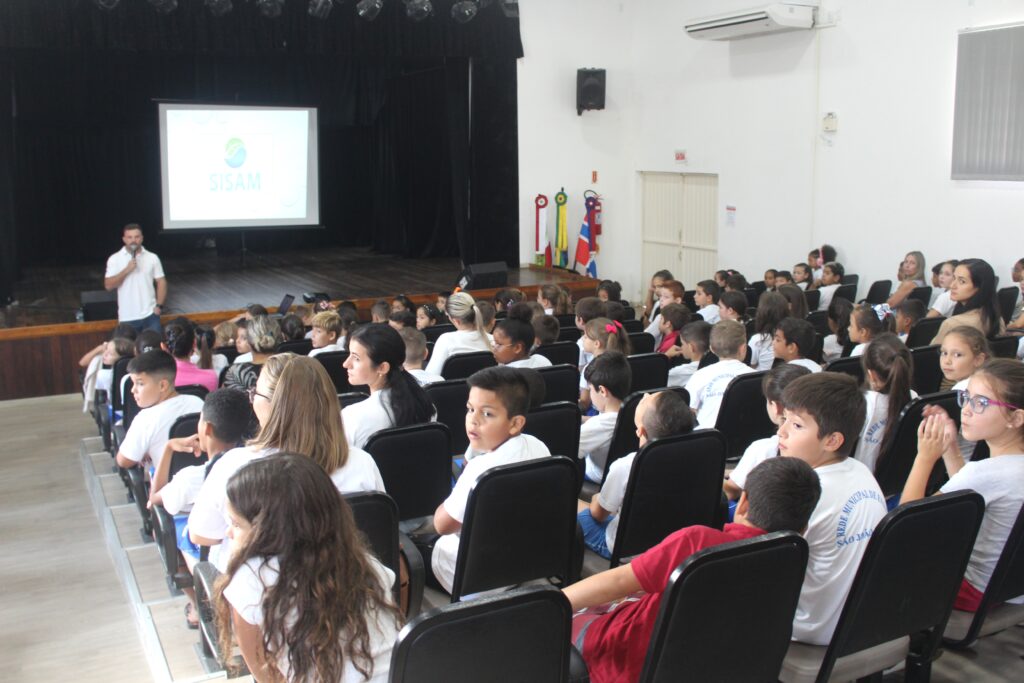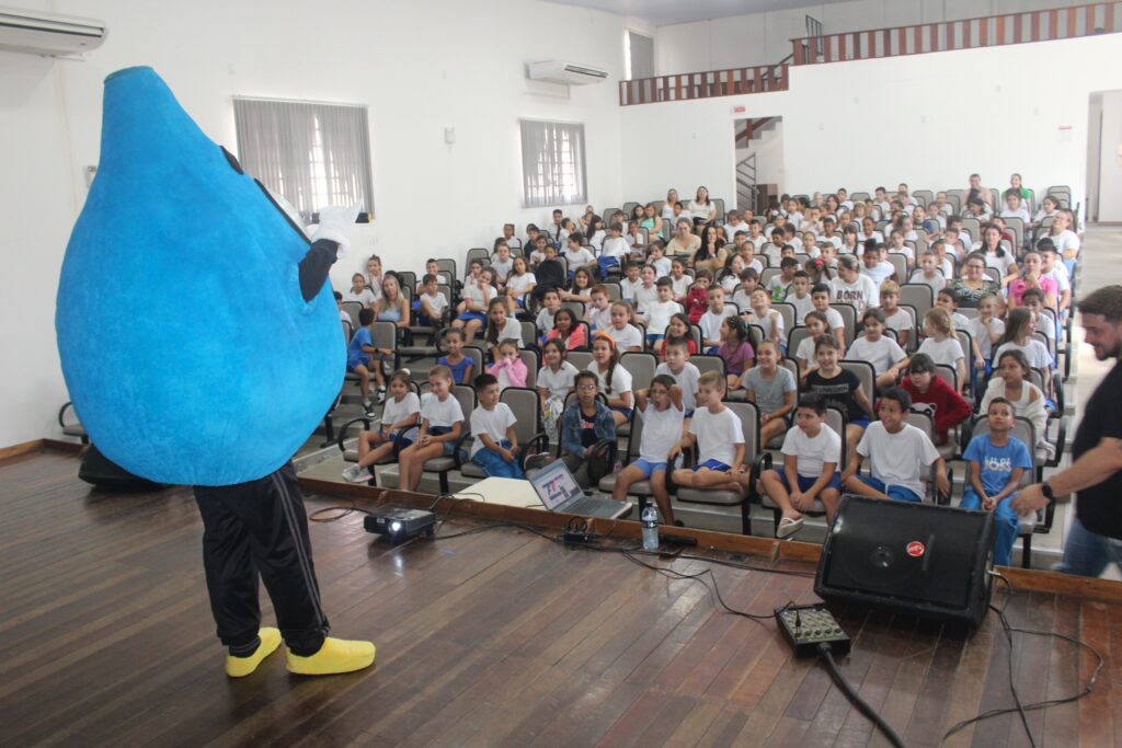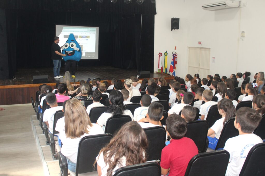 Em alusão ao Dia Mundial da Água, celebrado no último dia 22, estudantes do 3º ano de Ensino Fundamental da rede municipal de São João Batista participaram, nesta segunda-feira (31), de uma palestra de conscientização sobre o tema. As atividades, promovidas em parceria entre o Sisam e a Secretaria Municipal de Educação, aconteceram no Centro Cultural Batistense tanto no turno da manhã como no da tarde, reunindo mais de 400 crianças.