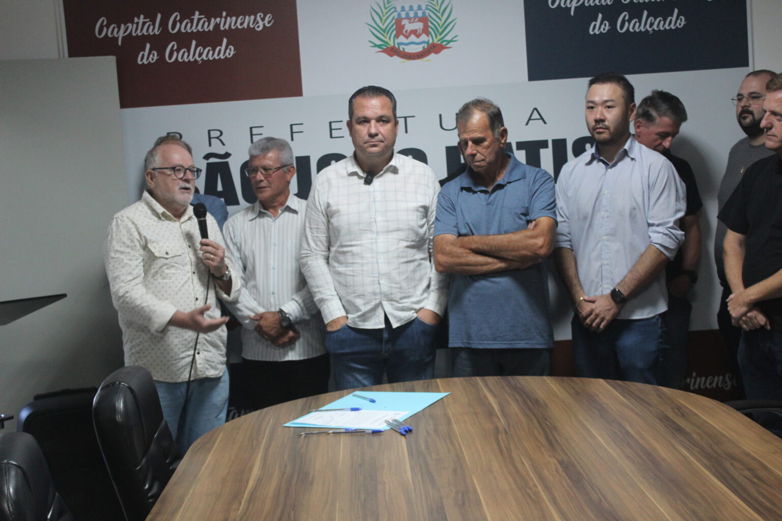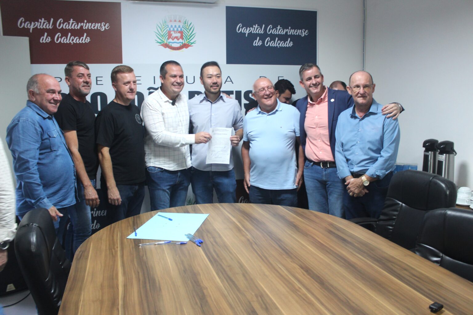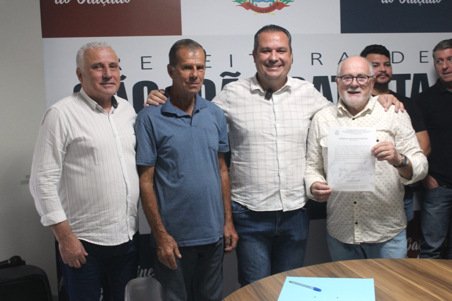 O prefeito Juliano Peixer e o secretário municipal de Infraestrutura, João Lacir Peixer, assinaram, na manhã desta segunda-feira (07/04), a ordem de serviço para a construção da nova Ponte dos Imigrantes Italianos, no acesso da SC-108 ao bairro Colônia Nova Itália. A obra será executada pela empresa Engepon Construtora Ltda, vencedora do Processo Licitatório nº 001/PMSJB/2025 – Concorrência Eletrônica nº 001/PMSJB/2025.
