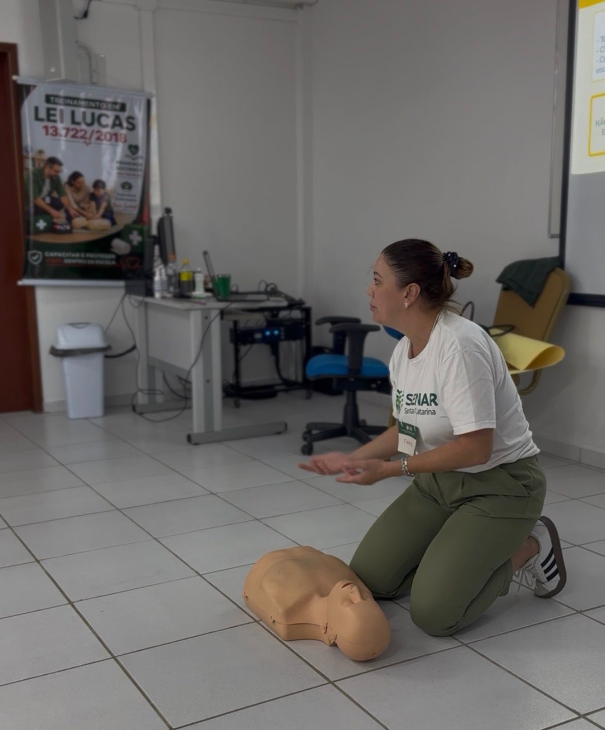 A Prefeitura de São João Batista, por meio da Secretaria Municipal de Educação, está realizando um importante treinamento de primeiros socorros com base na Lei nº 13.722/2018, conhecida como Lei Lucas. A capacitação acontece nos dias 22, 23 e 24 de abril, no SENAI, em parceria com o SENAR.